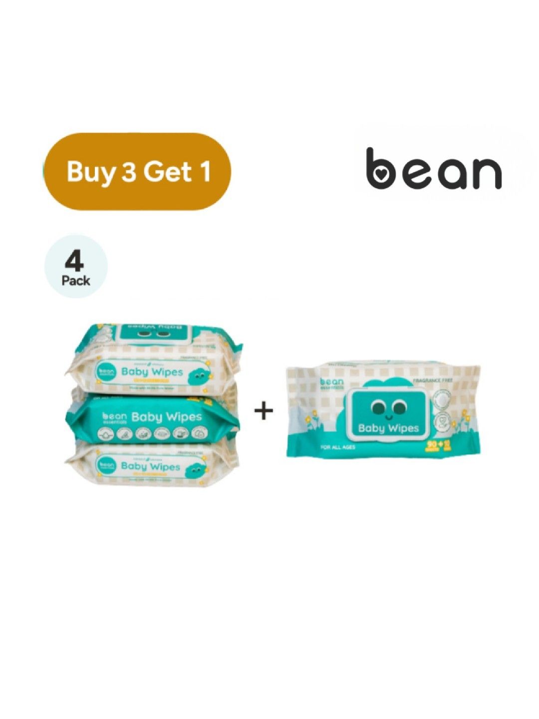 About bean [BUY 3, GET 1] Baby Wipes Fragrance Free - 4 x 100 sheets