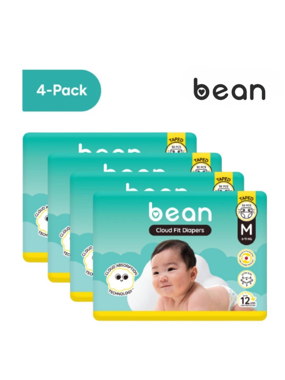 About bean [Bundle of 4] Cloud Fit Diapers Medium (30s) - 120 pcs