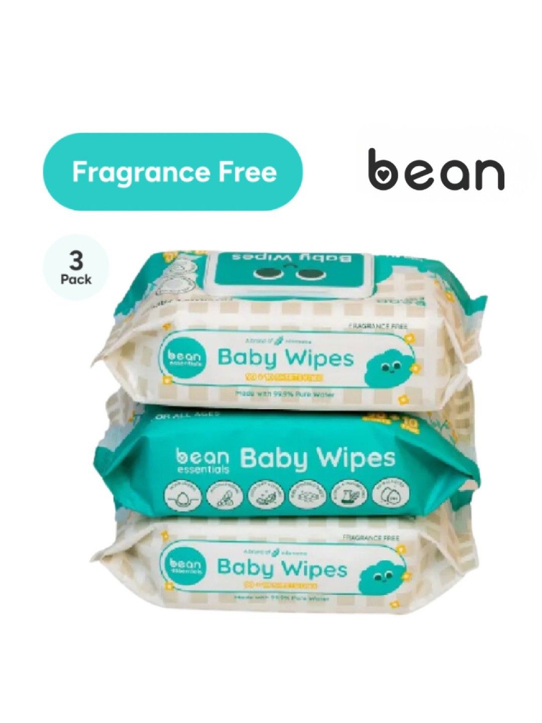 About bean [Bundle of 3] Baby Wipes Fragrance Free 3 x 100 sheets