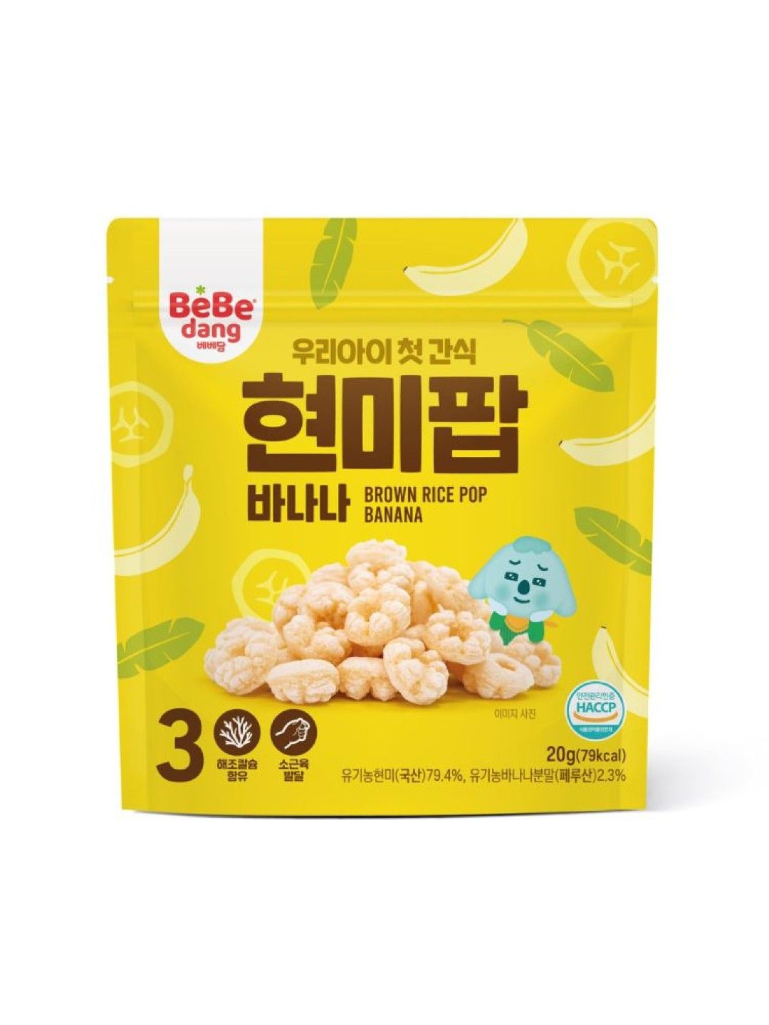 The Bebedang Brown Rice Pop - Banana is a wholesome, organic snack made from 100% Korean brown rice that melts easily in little mouths. Its small, round shape helps develop fine motor skills, while being enriched with seaweed calcium for extra nutrition—all with no artificial additives. Mama, give your child a tasty, healthy treat that supports their growth and satisfies their sweet cravings naturally!