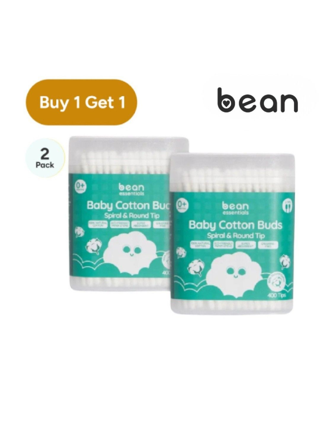 About bean [Bundle of 2] Spiral & Round Cotton Buds (2 x 400 tips)