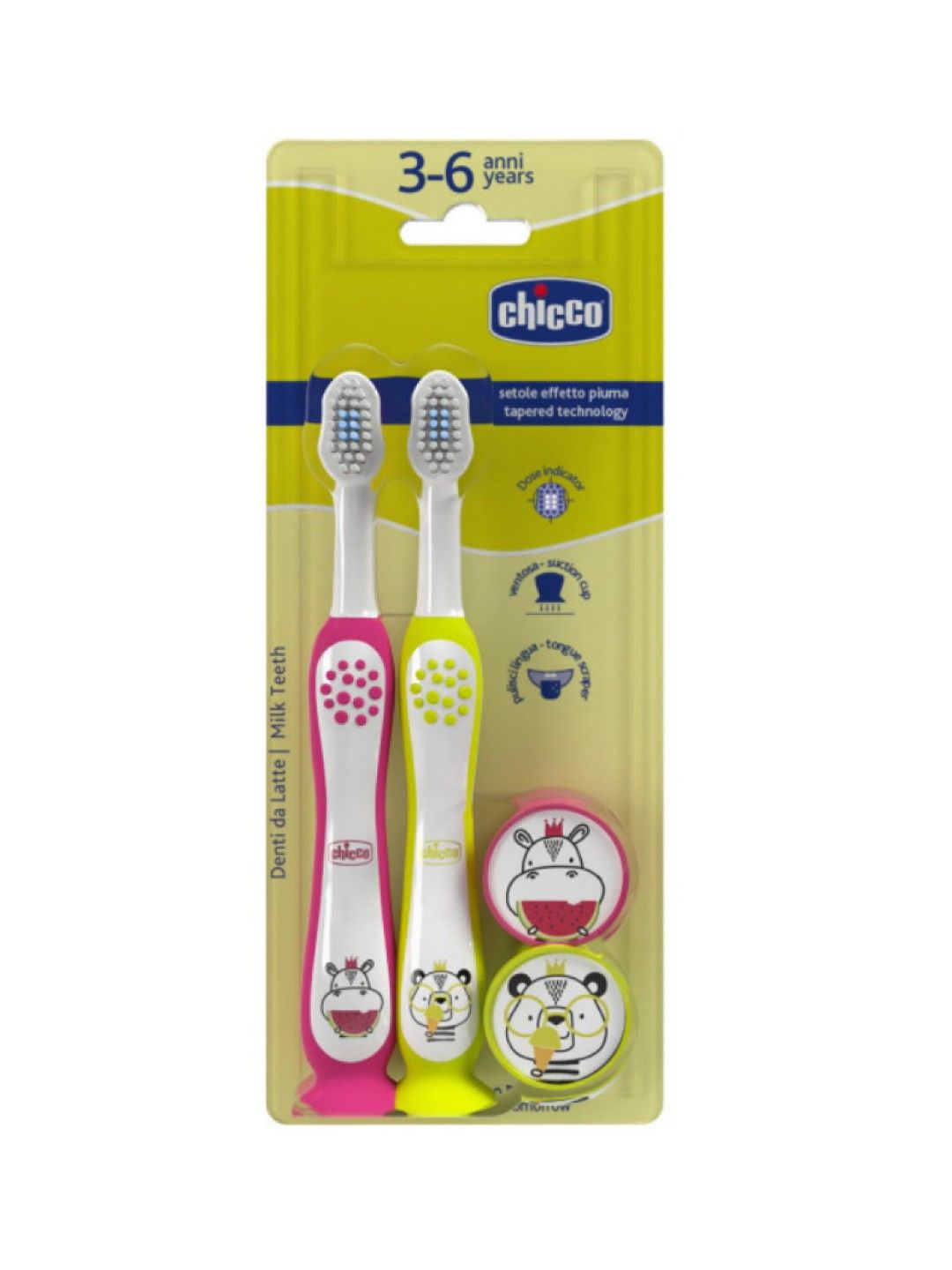 About Chicco Combo Kids Toothbrush Hippo-Panda (3-6y)