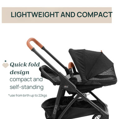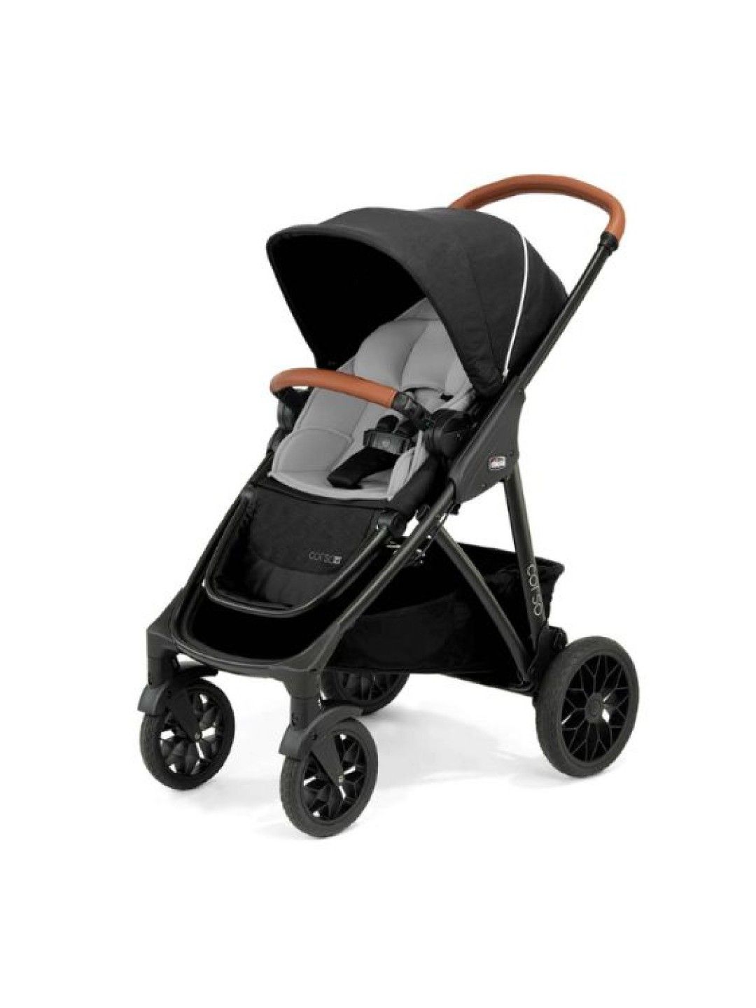 The Corso® LE Modular Stroller in Studio is a perfect mix of luxury and functionality for modern mamas! With parent-facing and forward-facing strolling options, it's designed to adapt as your baby grows. It comes with a cozy infant insert for newborns and premium leatherette accents for a chic touch. The one-hand quick-fold design is compact and self-standing, while the multi-position recline, adjustable footrest, and UPF 50+ canopy with a mesh peek-a-boo panel keep your baby comfy and protected. Featuring adjustable FlexCore® suspension, treaded rubber tires, and an ergonomic push handle, it’s smooth to steer. Plus, the extra-large storage basket and compatibility with Chicco infant car seats make this stroller a must-have for style and practicality!
