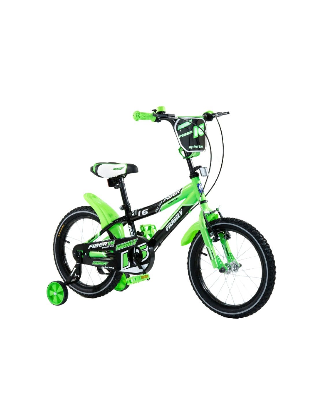 The FAMILY Kids' BMX Bicycle Fiber 16" helps young riders build cycling confidence with sturdy training wheels and a lightweight frame. It features double brakes for safety, front/rear fenders, reflectorized lights for visibility, and a fun bell for added enjoyment. Mama, give your child the joy of independence while you rest easy knowing they're riding safely!