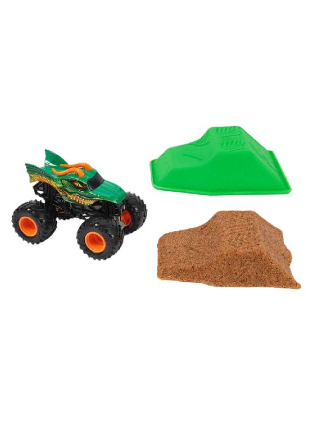 Hey mamas! Get ready for action-packed fun with the exclusive 1:64 scale die-cast Monster Jam truck included in the set includes dirt-stained BKT tires and a detailed body for an authentic Monster Jam look. Shape, build and jump on realistic ramps with your Monster Jam truck.