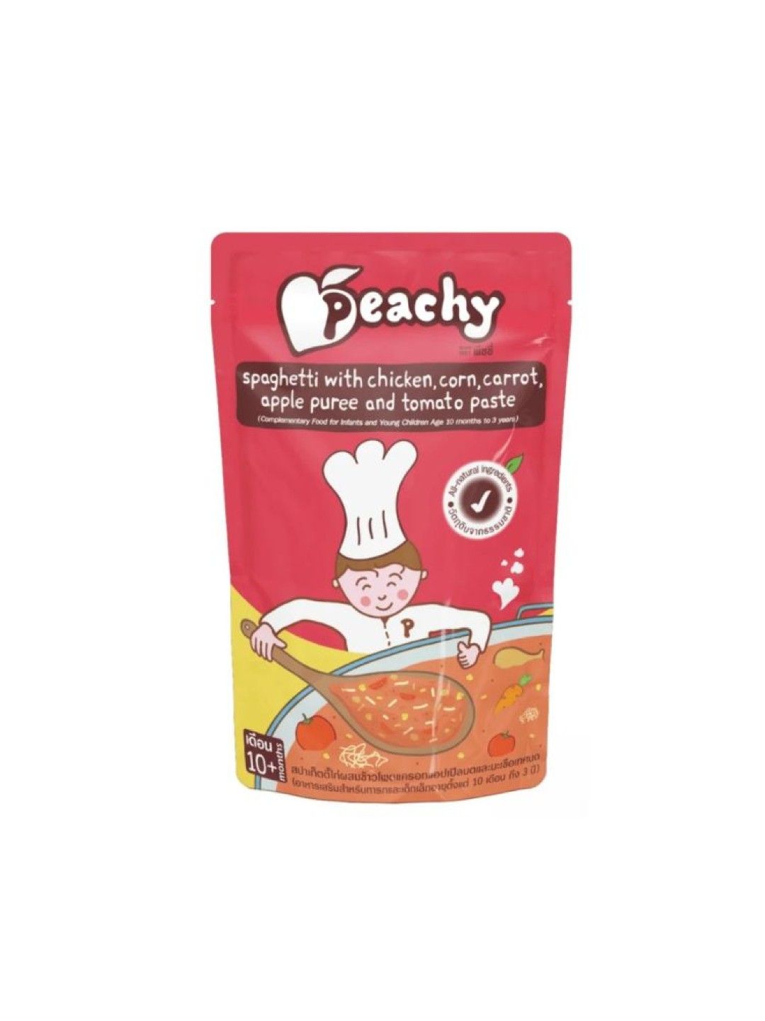 About Peachy Baby Food Spaghetti with Chicken, Corn, Carrot, Apple Puree & Tomato Paste