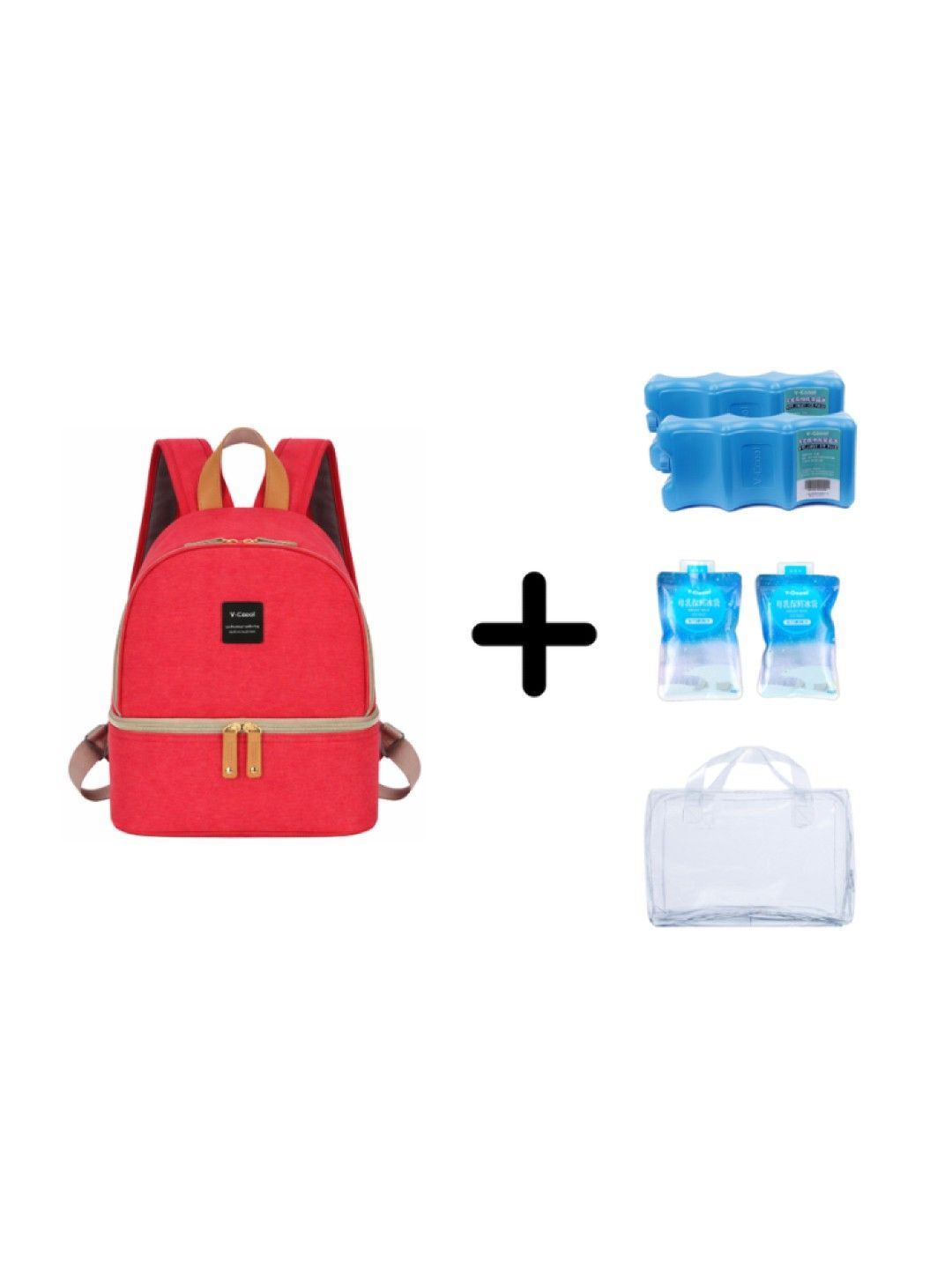 V-coool Thermal Cooler Breastmilk Backpack Bag with Ice Bricks, Gel & PVC Bag
