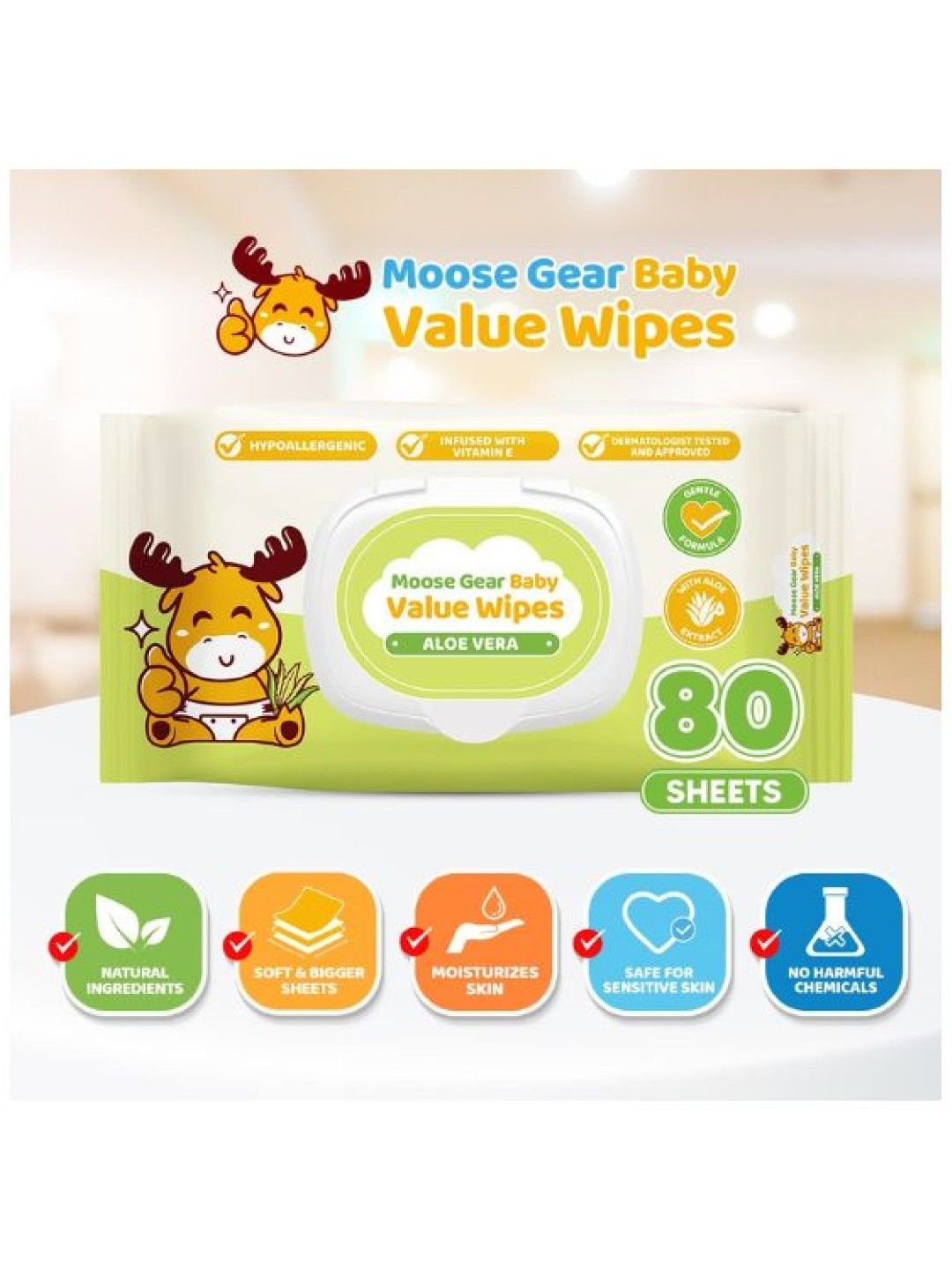 Moose Gear Baby Value Wipes (Aloe Vera Scent) 80 Tender Sheets x1 Pack New Lite Wet Wipes
